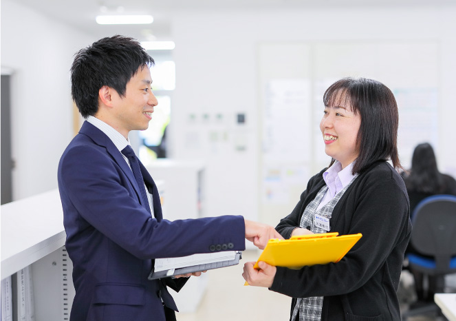 数年して生産管理から営業事務へ部署異動となりました。主な業務内容は、マスタ作成や見積作成でしたが、営業マンに同行してユーザー訪問し、会話の仕方やユーザー知識を増やすことができました。